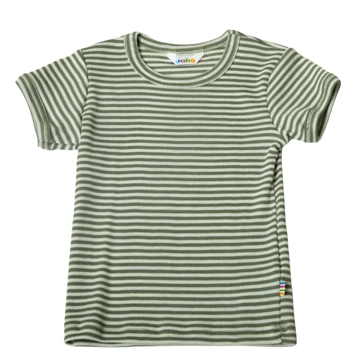 Joha Kurzarm Shirt grün gestreift Merinowolle / Seide