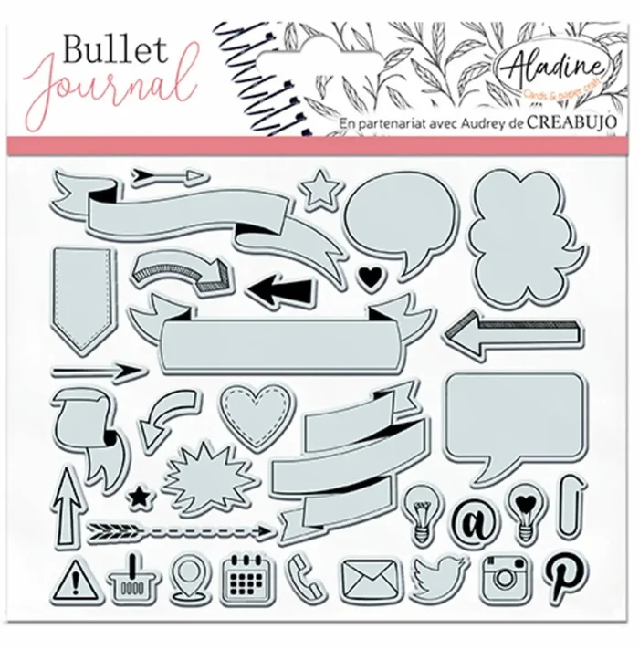 Aladine Aladine Stampo Bullet Journal Clear Stempels 16×16 cm Banners en Pictogrammen