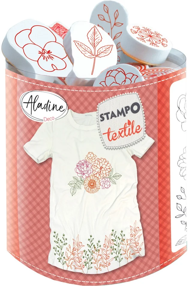 Aladine Aladine Stampo Stempel Set Textiel Bloemen en Bladeren 19 stuks