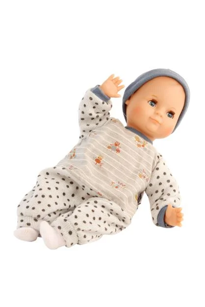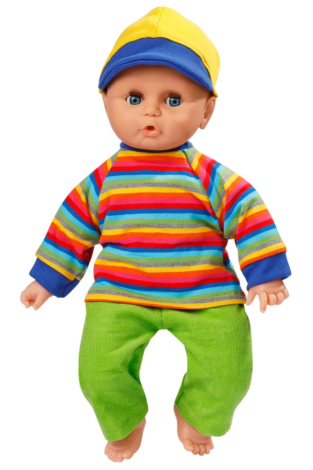 Schwenk Baby Puppe mit buntem Dress und Kappe in der Größe 32 cm