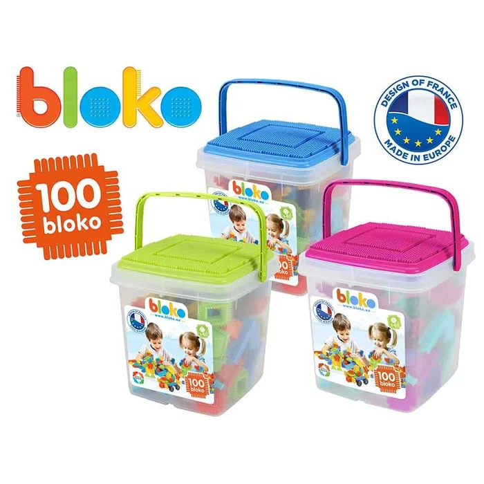 100 Bloko Steckspiel Steine im Eimer