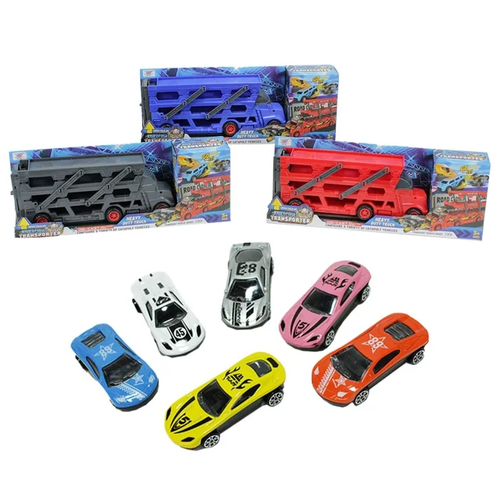 Auto Transporter Spielzeug mit 6 Fahrzeugen in LKW – 3fach sortiert – ca. 40 cm