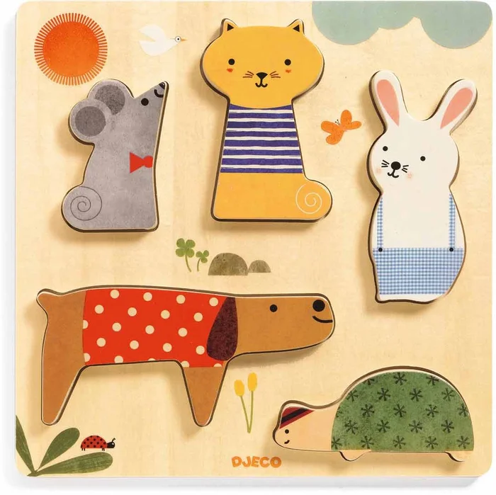 Djeco DJ01051 Holz Puzzle Woodypets Dicke Puzzleteile Tiere Ab 12 Monate Bunt