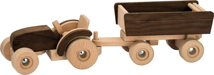 Traktor mit Anhänger Holz ÖKO natur, kippbar