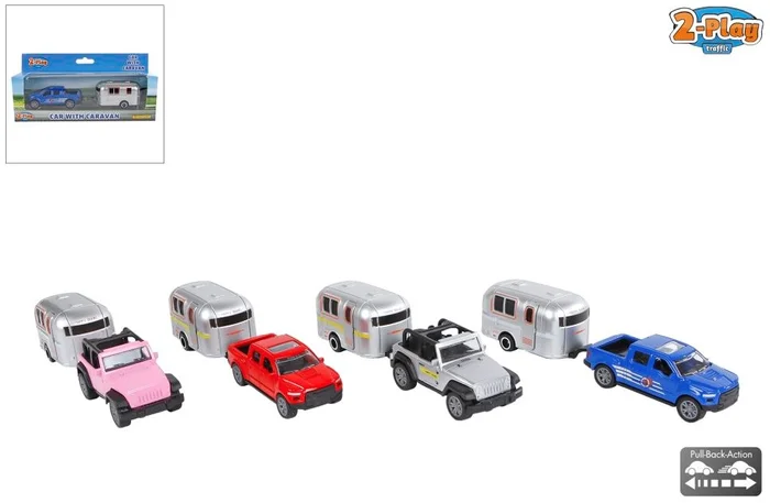 2-Play Die-Cast Pull Back Auto met Caravan