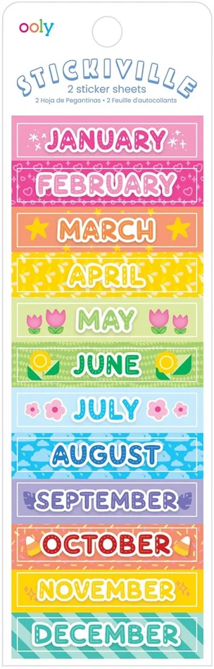 Ooly – Stickiville-Aufkleber: Monate des Jahres – dünn (2 Bögen) (holografischer Glitzer)