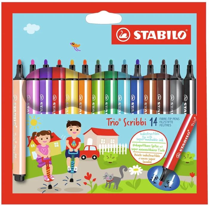 Gefederter Dreikant-Filzstift – STABILO Trio Scribbi – 14er Pack – mit 14 verschiedenen Farben