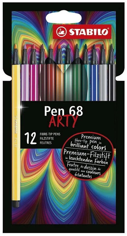 Premium-Filzstift – STABILO Pen 68 – ARTY – 12er Pack mit Hängelasche – mit 12 verschiedenen Farben