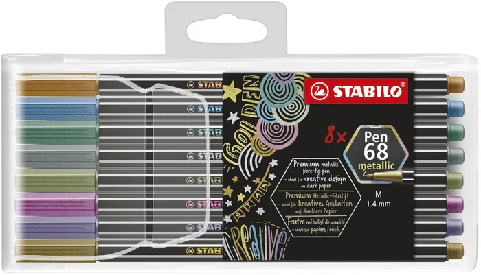 Premium Metallic-Filzstift – STABILO Pen 68 metallic – 8er Pack – mit 8 verschiedenen Metallic-Farben