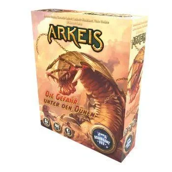 Ihr werdet gejagt! Erkundet die Ruinen der heißen Wüste und versucht, dem unbarmherzigen Sandwurm zu entkommen. Diese riesige Kreatur verschlingt alles auf ihrem Weg! Es verlangt Mut und cleveres Denken, um den Sandwurm zu besiegen …Diese Erweiterung für Arkeis enthält ein exklusives Abenteuer und eine neue Spielfigur: Der Sandwurm.Arkeis ist ein kooperatives Legacy Abenteuerspiel mit den von uns bekannten detaillierten Miniaturen, das in verschiedenen Kampagnen gespielt wird. Erforscht die Gräber des altertümlichen Ägyptens und stolpert über Mysterien die die Geschichte vergessen hat. Um die Wahrheit zu finden, müssen unsere Archäologen und Abenteurer sich tiefer und tiefer in die Pyramiden vorarbeiten um Fallen umgehen und Monsterhorden (nein, ist nicht Monster Slaughter) bekämpfen.