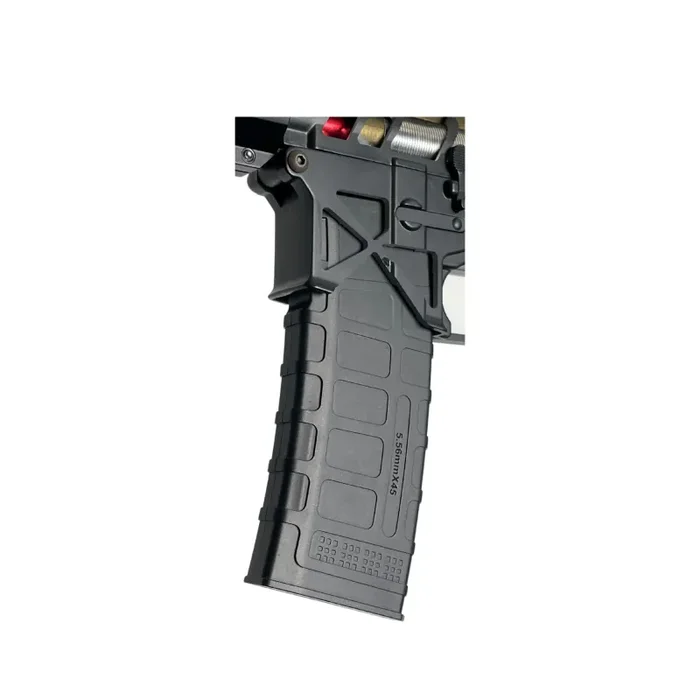 Dies ist das „Axie“ GBG Custom M4-Gewehr. Dies ist ein sehr hochwertiger Build mit einigen der intensivsten Teile in der Gelball-Welt. Der programmierbare Leviathan V2 Mosfet für kontrollierte Zündung und ein eloxiertes Retro Arms CNC-Getriebegehäuse sorgen dafür, dass Ihr Wettkampfblaster robust und zuverlässig ist.