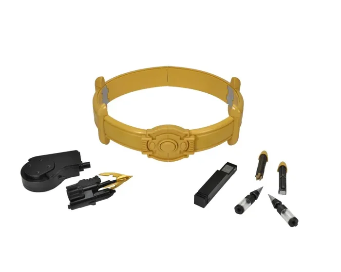 Besondere Merkmale: tragbare und filmgetreue Nachbildung, individuell bestückbar mit acht enthaltenen Kartuschen (Taschenlampe, Taser, Scanner, Mikro-Kamera, Atemgerät, Gasgranaten, Rauchbomben), magnetische Frontaufnahme für separat erhältliche Gadgets (Batarang, Grapnel Launcher, Kommunikator), zwei abnehmbare Frontplatten mit weiteren Werkzeugen, verstellbarer Taillenverschluss, keine Batterien erforderlich