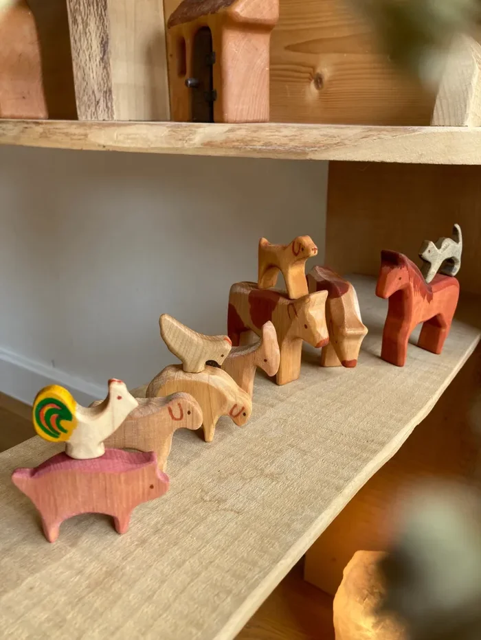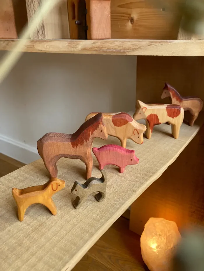 Diese Kuh aus Erlenholz wurde liebevoll handbemalt und passt super in kleine Kinderhände.