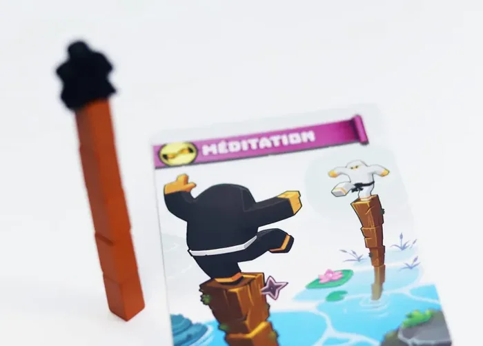 Als Ninja-Lehrling ist es an der Zeit, dass du dein ganzes Können in herausfordernden und spannenden Prüfungen unter Beweis stellst. Wirst du schneller, stärker, geschickter…. oder einfach konzentrierter sein als deine Gegner?Dein Training besteht abwechselnd aus kollektiven Prüfungen und Duellen in einer Reihe von abwechslungsreichen Tests, die nach dem Zufallsprinzip ausgelost werden. Aber egal, ob du die ganze Gruppe herausforderst oder gegen einen anderen Ninja antrittst, es gibt nur eine Regel: Sei der Beste in deiner Prüfung!Versuche zum Beispiel, der erste Spieler zu sein, der einen Ninja-Meeple auf jede deiner Fingerspitzen setzt! Versuche zu erraten, wie viele Ninjas dein Gegner in die Schachtel gelegt hat, indem du sie schüttelst! Sei der Schnellste, der 5 Holzscheite vertikal zusammensetzt! Sei stark genug, um je nach Punktestand Punkte zu sammeln, aber sei auch strategisch genug, wenn du auf den Gewinner jedes Duells setzt! Ninja Academy ist ein lustiges und schnelles Geschicklichkeitsspiel mit extrem hohem Wiederspielreiz!