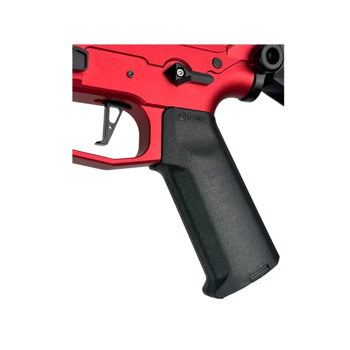 Der Retro Arms V2 CNC-Empfänger und das Getriebe bereiten die Bühne, während SHS Carbon Steel Gears und der renommierte Bigrrr Misfet zusammenarbeiten, um beispiellose Schusspräzision und reaktionsschnellen Rückstoß zu liefern. Bringen Sie Ihr Gel-Blaster-Erlebnis auf den Höhepunkt – wenn Sie das Höchste suchen, endet Ihre Suche mit dem „Retro Bloodstorm“ GBG Custom Build.