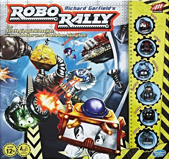 Im Kennerspiel Robo Rally wählt jeder Spieler einen Roboter aus und steuert seine Züge, indem er Karten ausspielt. Wenn alle Spieler ihre Karten enthüllen, nimmt das Chaos in der Autofabrik seinen Lauf. Laser, Gruben und drehende Förderbänder stellen gewagte Hindernisse dar – doch auch diese können zum eigenen Vorteil genutzt werden. Es gilt, in nummerischer Reihenfolge die Checkpoints abzufahren. Der erste Spieler, der alle Checkpoints erreicht, gewinnt.