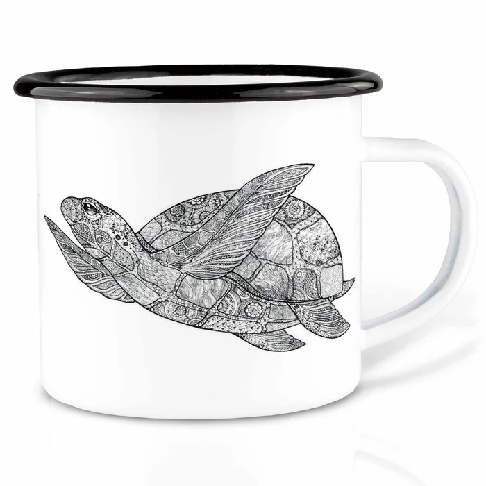 Schicke Metalltasse mit schwarzem Rand und 500ml Fassungsvermögen.