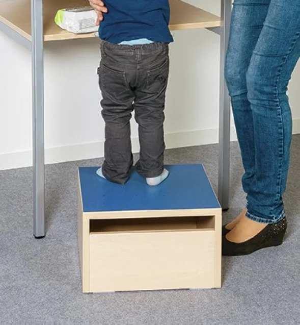 Wickelkommode mit Treppe rechts/ links, einem Waschbeckenund Unterschränken mit Schubladenboxen transparent (farbige Boxen auf Anfrage)