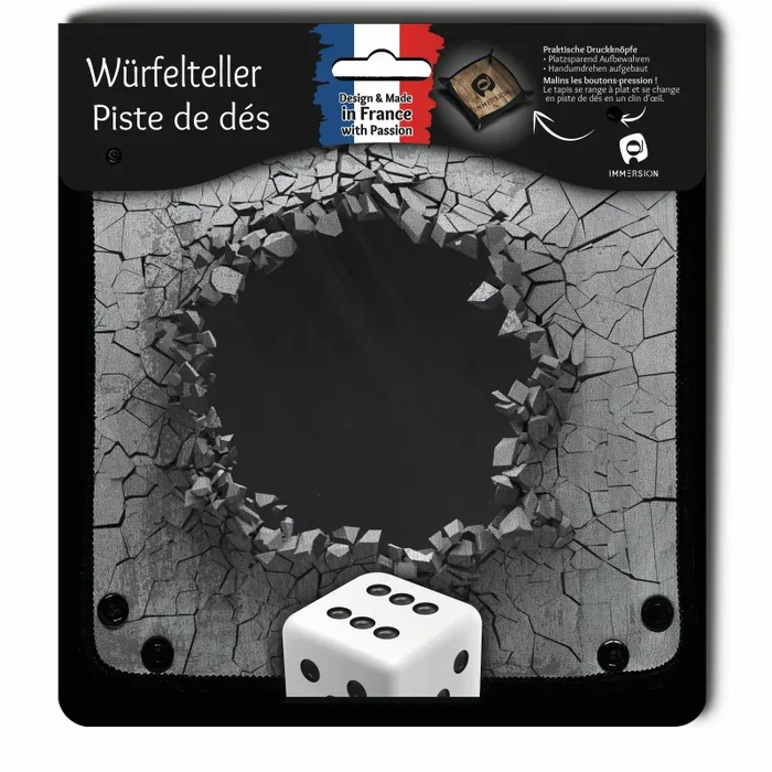 Dank diesem Würfelteller wird nicht nur das Würfeln leiser, sondern auch die Würfeldrehung wird durch die gebogenen Seiten verbessert. Hergestellt aus hochwertigem Neopren, genäht und mit rutschfester Rückseite. Hochauflösender Druck garantiert ein brillantes Erscheinungsbild & eine lange Nutzungsdauer. Mit den Druckknöpfen, lässt sich der Würfelteller flach oder aufgerollt aufbewahren. Der Würfelteller lässt sich sogar zur kleinen Tasche formen.